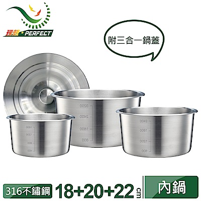 【PERFECT 理想】極緻316內鍋三入組6+8+10人份(附蓋)$1,35283折