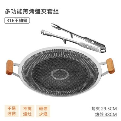 【QHL 酷奇】316不鏽鋼 雙耳 多功能 不沾煎烤盤-38CM$699