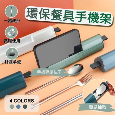 【莫內花園】頂級316不鏽鋼環保便攜餐具組 不銹鋼筷子湯匙叉子+收納盒(野餐露營餐具 手機架)$299