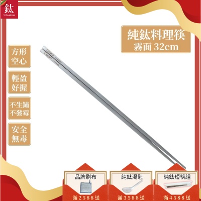 TiKOBO 鈦工坊純鈦餐具 純鈦料理筷/方形空心筷/公筷 32公分 (霧面質感)