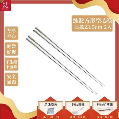 TiKOBO 鈦工坊純鈦餐具 純鈦方形空心筷/鈦方財筷 23.5公分(長款) 2入組