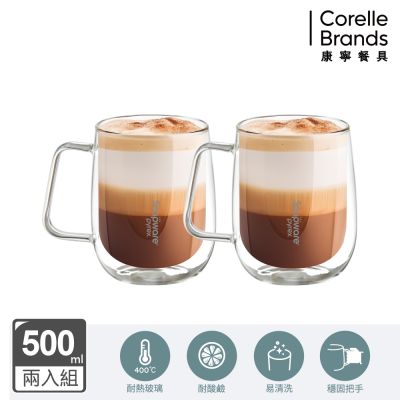 【美國康寧】(買1送1) Snapware 淨漾耐熱雙層把手玻璃杯500ml
