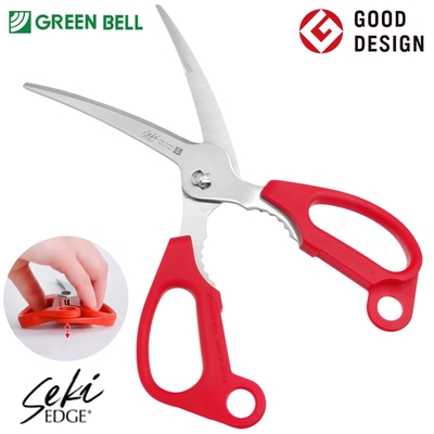 日本製GREEN BELL彎刃弧形握把Seki Edge多功能大型廚房剪刀SJ-K120(可拆式鋸齒狀不鏽鋼刃長85mm;開瓶罐;附掛洞;可洗碗機)料理剪刀食物雞骨剪刀