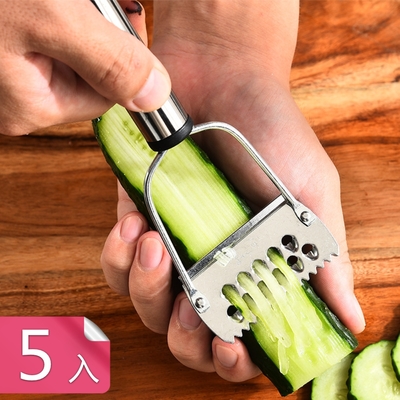 荷生活 不鏽鋼三合一刨絲削皮刀魚鱗挫刀蔬菜水果去皮刀-5入