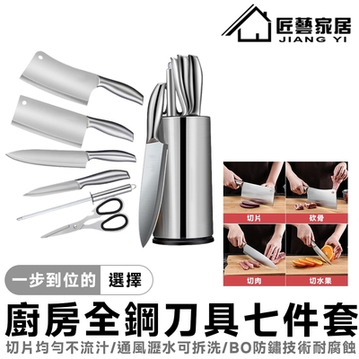 匠藝家居 全鋼刀具 刀架 七件套 刀具組 刀座(菜刀組 砍骨刀 切菜刀 水果刀 料理刀 日式廚刀)$1,145$1,486