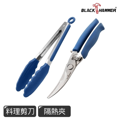 (中秋燒烤必備)【BLACK HAMMER】極利多功能料理剪刀/雞骨剪+不銹鋼耐熱食物夾兩件組