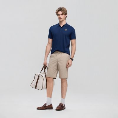 - Hang Ten-男裝- 韓款經編布鬆緊帶短褲-淺卡其$499