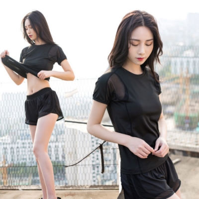 Biki比基尼妮泳衣,網紗短袖三件式泳衣泳裝比基尼(M-XL)