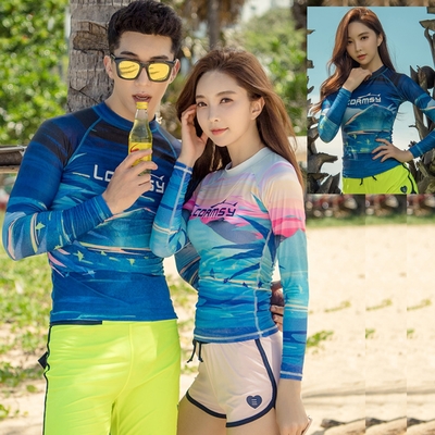 Biki,女M-XL沖浪服防晒游泳情侶長袖泳衣風彩