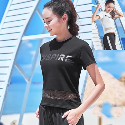 Biki.泳衣罩衫都萃短袖泳衣上衣短版網孔