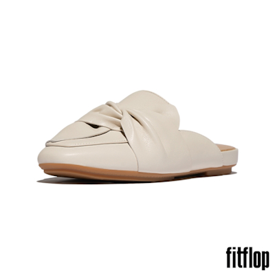 【FitFlop】DELICATO 柔軟紐結紋皮革木屐鞋-女(米色)
