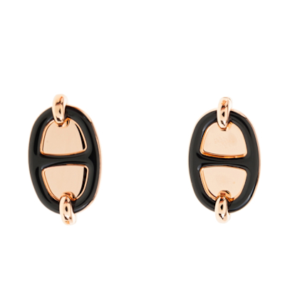 HERMES 愛馬仕 經典Mini Maillon穿式耳環 (NOIR/玫瑰金)