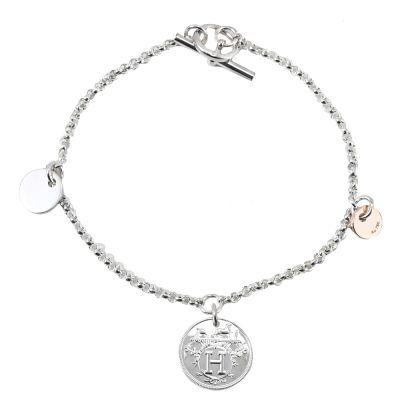 HERMES Ex-Libris H LOGO硬幣造型純銀手鍊