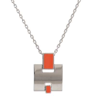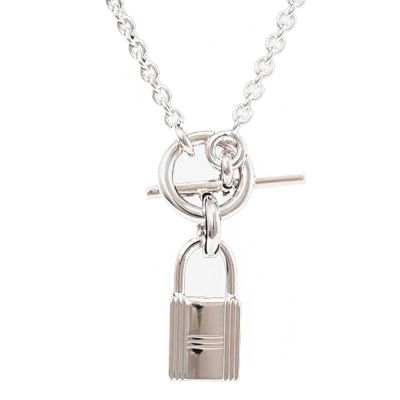 HERMES Amulettes H Ex-Libris 經典標誌LOGO純銀項鍊墜鍊-銀色