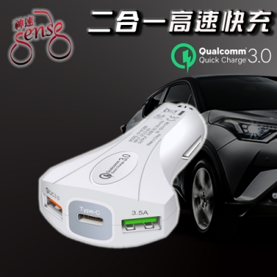 Sense神速 二合一Type-C+2孔USB(支援QC3.0)快充車充 白$392$489