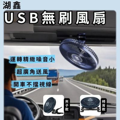 湖鑫USB無刷風扇 9寸夾扇 車用掛扇 後座風扇 車用風扇 車內風扇 USB風扇$51586折