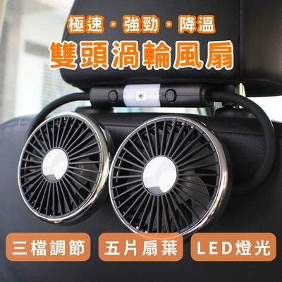 大風力車用椅背雙頭風扇(後座 椅背 雙頭 USB 風扇 雙渦輪 車用電扇 車用風扇 雙出風口 360度調整)$28386折
