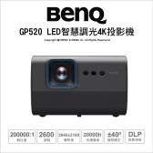 明碁 BenQ GP520 智慧調光投影機 4K 家庭劇院 自動側投影 2600流明 WiFi7 Google TV