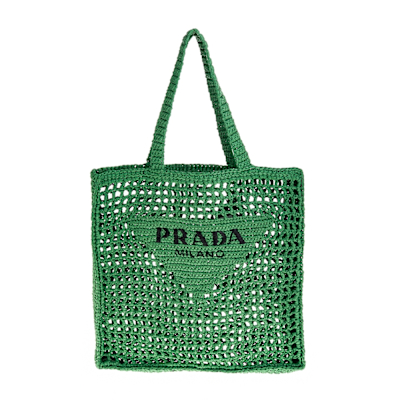 PRADA 新款三角形刺繡字樣標誌拉菲草手提/肩背包 (綠色)$37,32486折