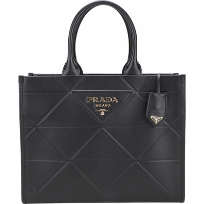 PRADA 普拉達 Symbole 中款 三角壓花牛皮手提/肩背托特包(黑色)$69,90083折