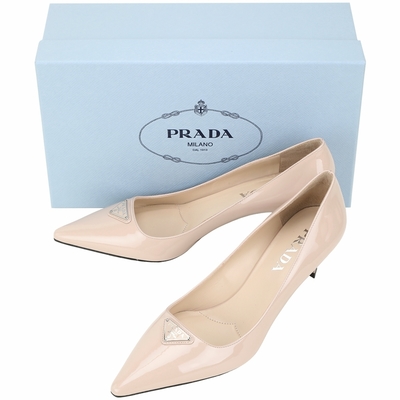 PRADA 普拉達 三角牌漆皮中跟尖頭鞋(鞋跟5CM/杏色)$16,8008折