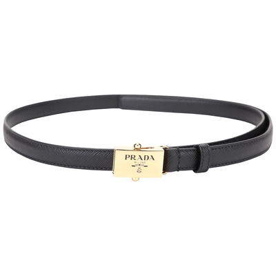 PRADA 普拉達 Saffiano 金色方型扣頭防刮牛皮細版腰帶(黑色/15mm)