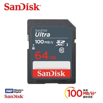 SanDisk 晟碟 (全新升速版) 64GB Ultra SDXC 100MB/s 升級C10 UHS-I 高階相機卡 (升速版100MB/s 原廠7年保固)$599