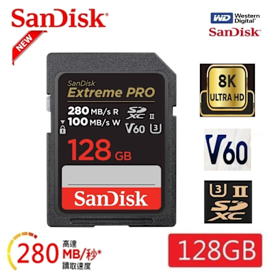 SanDisk 128GB Extreme PRO SDXC UHS II 280MB/s 記憶卡$1,677