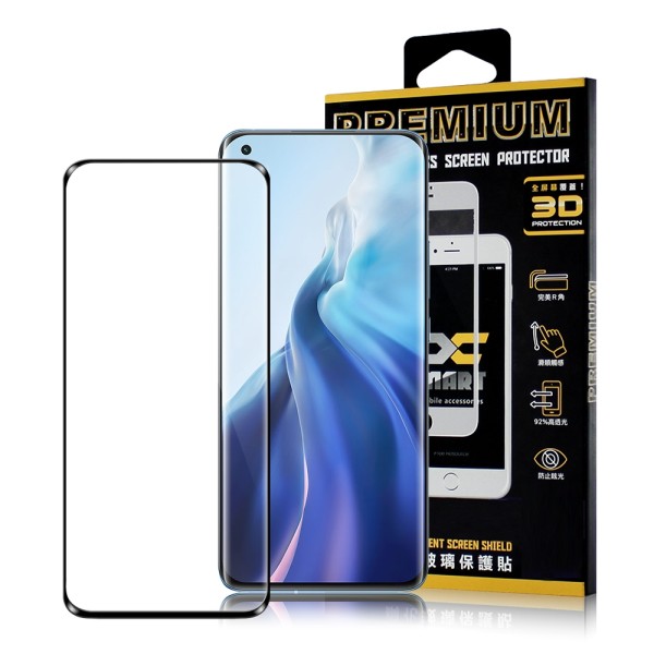 商店Xmart for 小米11 3D邊膠曲面滿版玻璃貼-黑-可指紋辨識