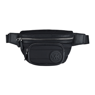 MK MICHAEL KORS BROOKLYN圓標橡膠LOGO絎縫設計尼龍拉練胸腰包(黑)$4,688升級購活動