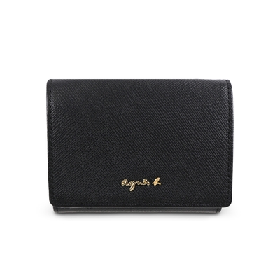 agnes b. Voyage b. logo防刮皮革三層短夾(黑色)$4,606
