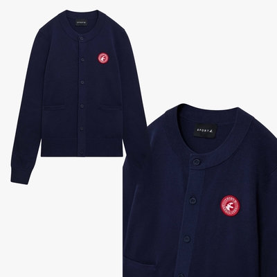 agnes b.Sport b. 情侶款/女裝 Dino徽章圓領針織開襟外套(深藍色)$3,948