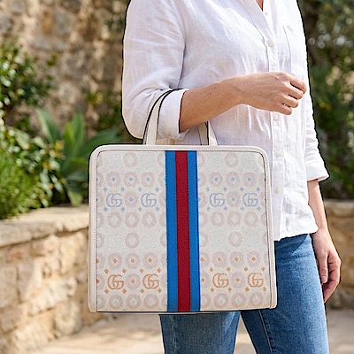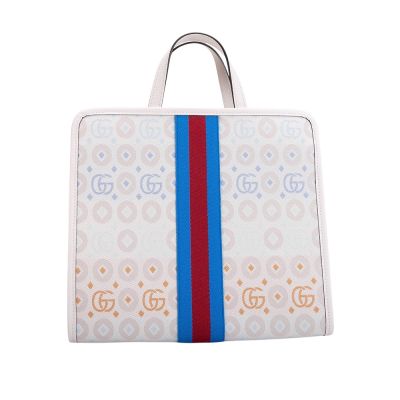 GUCCI 童趣藍紅藍織帶托特包(白色)
