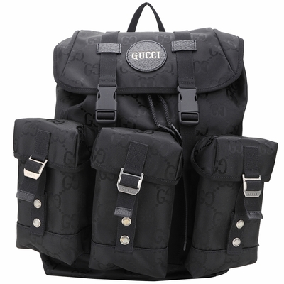 GUCCI 古馳 Off The Grid 雙G老花再生尼龍多口袋後背包(黑色)