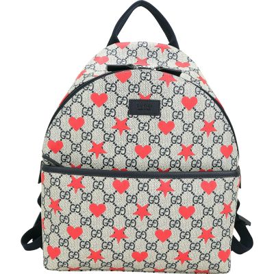 GUCCI 古馳 GG Supreme 老花帆布滿版愛心星星後背包(卡其色)