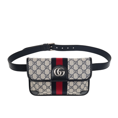 GUCCI 古馳 經典Ophidia系列GG Supreme帆布印花藍紅藍織背帶手拿/胸腰包 (藍黑色)