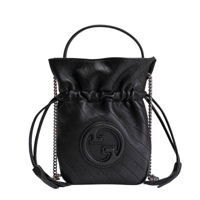 GUCCI Blondie 迷你縫線皮革束口水桶包(黑色)