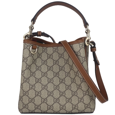 GUCCI GG Emblem 塗層帆布皮邊小型手提/斜背水桶包$70,240$71,440
