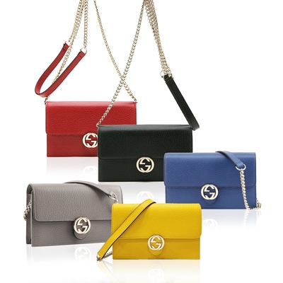 【GUCCI 古馳】經典雙G金屬LOGO荔枝紋牛皮鏈帶WOC手拿肩背斜背包(多色可選)$23,000$24,200
