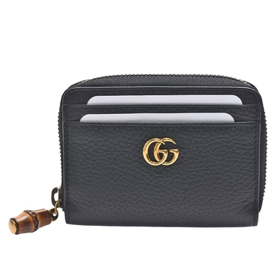 GUCCI 經典GG Marmont BAMBOO系列牛皮拉鍊零錢包(黑色)