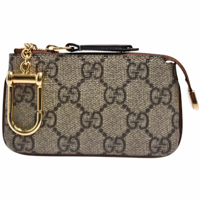 GUCCI 經典Supreme帆布牛皮飾邊拉鍊鑰匙/零錢包(烏木色)