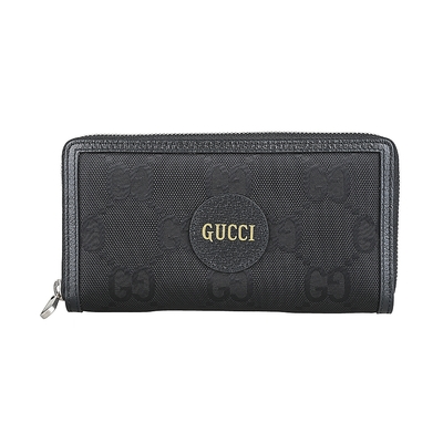 GUCCI Off the Grid金字LOGO緹花尼龍結合牛皮12卡ㄇ字型拉鍊長夾(黑)