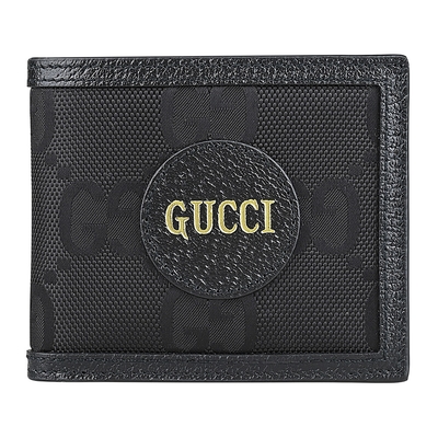 GUCCI Off the Grid金字LOGO緹花尼龍結合牛皮8卡對開短夾(黑)