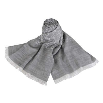 GUCCI 雙G LOGO緹花羊毛圍巾(灰銀)