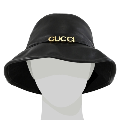 GUCCI 古馳 經典LOGO羊皮漁夫帽(黑)