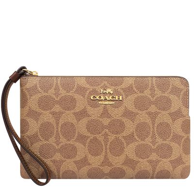 COACH Corner Zip 經典荔枝皮革簡約拉鍊小手拿包(淺褐色)