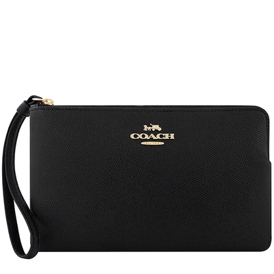 COACH亮粉燙印仿刺繡皮雕加工蝴蝶黑色素面皮革掛帶L型拉鍊萬用手拿包
