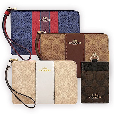 COACH Signature黃銅C字LOGO滿版印花設計PVC拼接牛皮拉鍊手拿包(焦糖棕x卡其x銹紅)$3,75379折