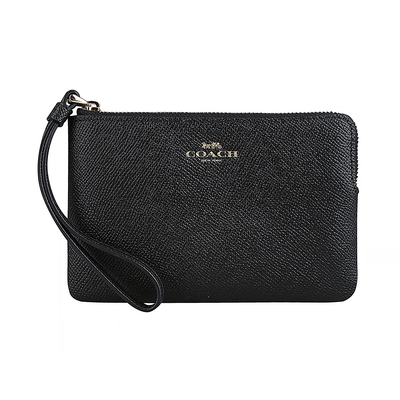 COACH燙金LOGO防刮牛皮拉鍊手拿包(黑)