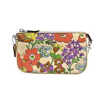 COACH NOLITA 19奶茶色全皮浮雕夏日花卉鍊帶手提掛小包